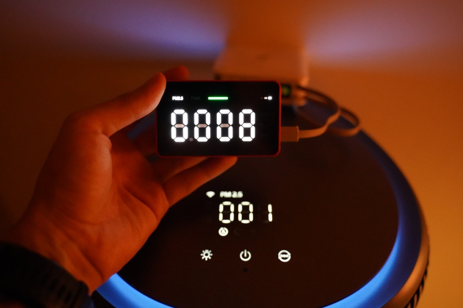 不過也得說,一進到 Turbo 強風模式,聲音存在感會比較大。不是吵,但有點像突然有人開了排風扇那種感覺。不影響功能,但如果我正好在拍影片或是玩遊戲連線開麥,會稍微有點尷尬。但本來就沒有十全十美的事情,風聲大清淨效果是真的很強,基本上不到 1 分鐘,PM2.5 就能馬上從原本的 30、50 降到 0.01!
