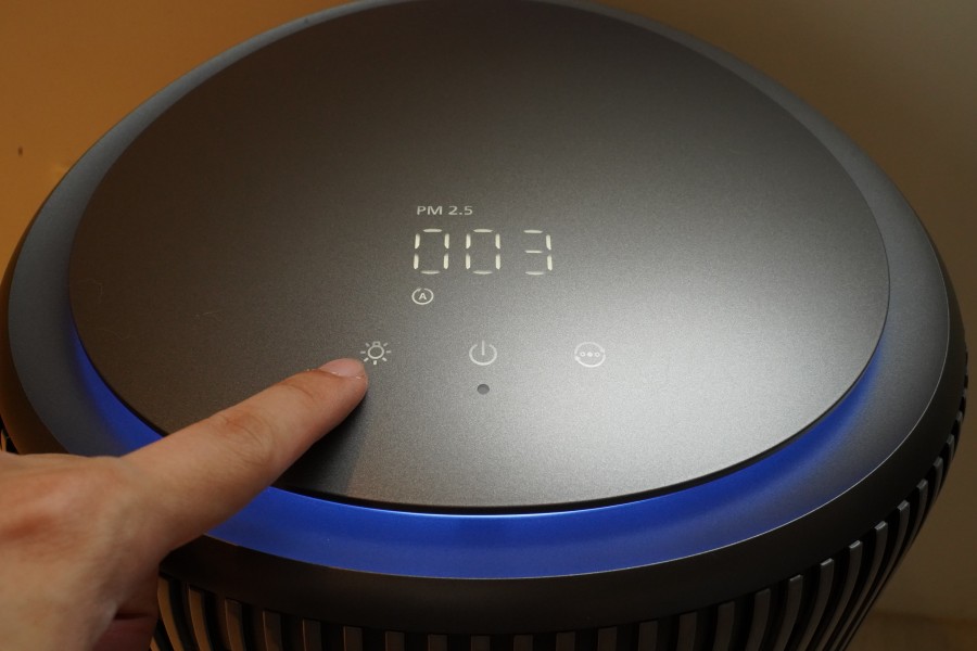 但是講實話,這台的面板 UI 設計我覺得挺有質感的,基本上不需要什麼操作,但如果你是放房間,可以選擇把空氣品質顯示燈號關閉,就不會影響到睡眠。