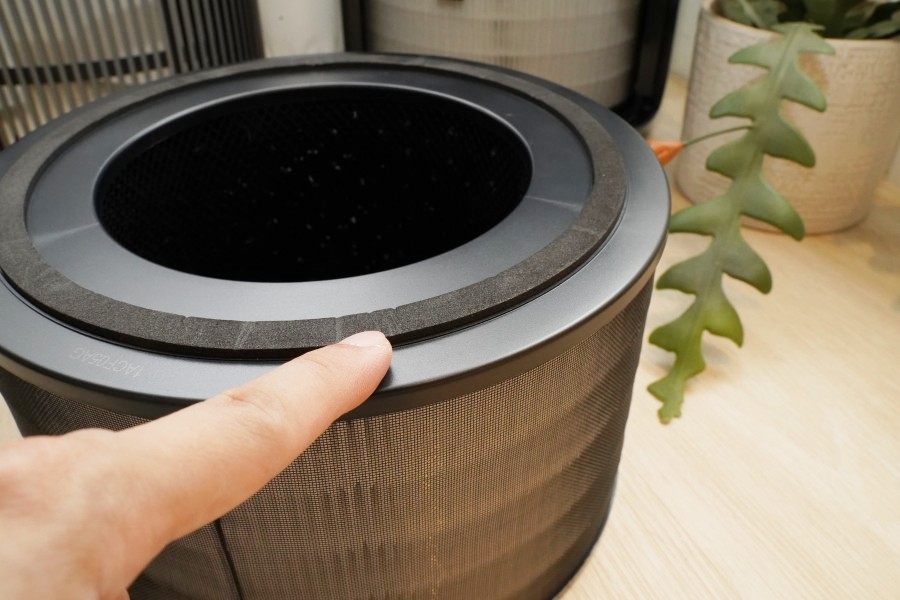 俞果也注意到,這個濾網跟風扇的接縫處,是有密封條設計的,這點就很加分,因為有些便宜的空氣清淨機是不會考慮到這麼細節的。