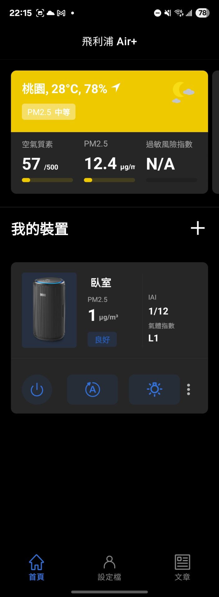 新增後就可以看到空氣清淨機顯示面板的狀態,當然也可以遠端控制。